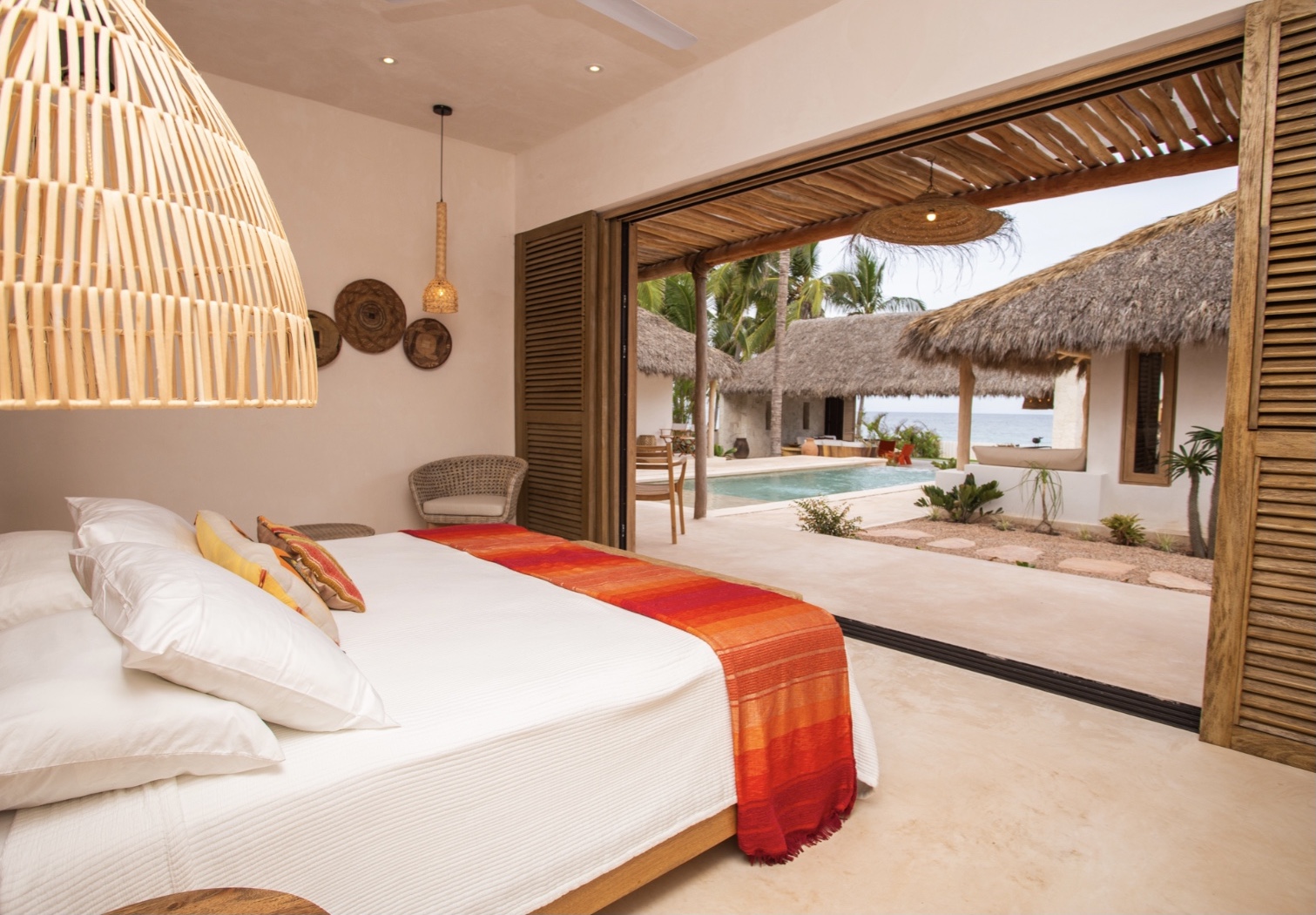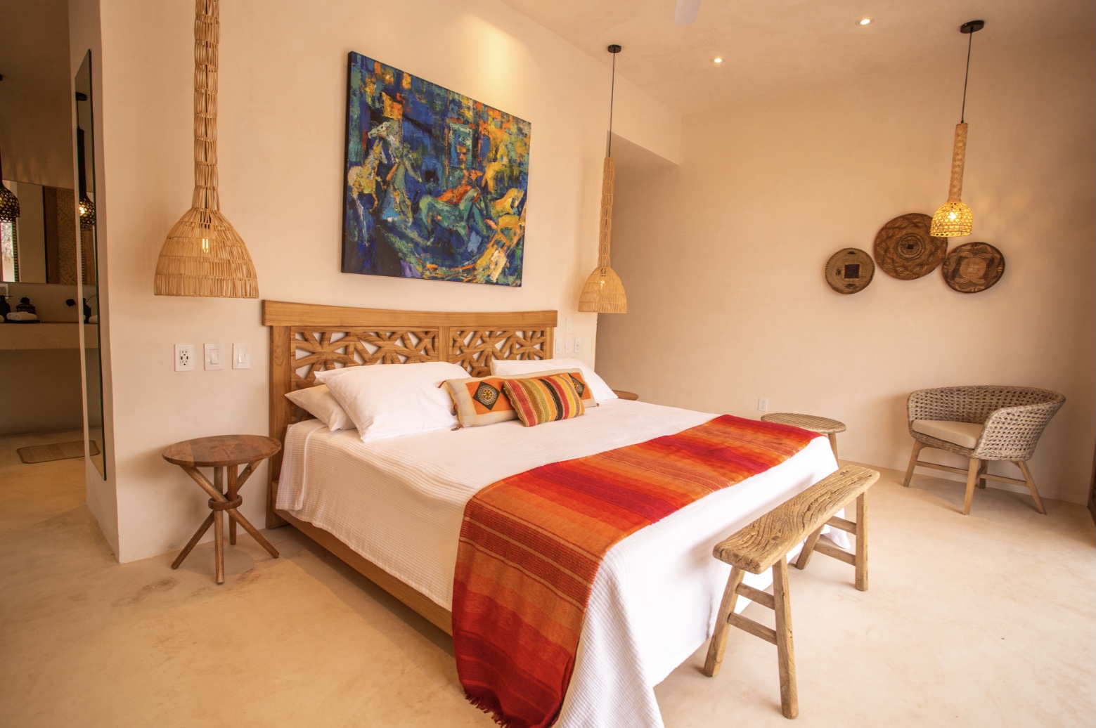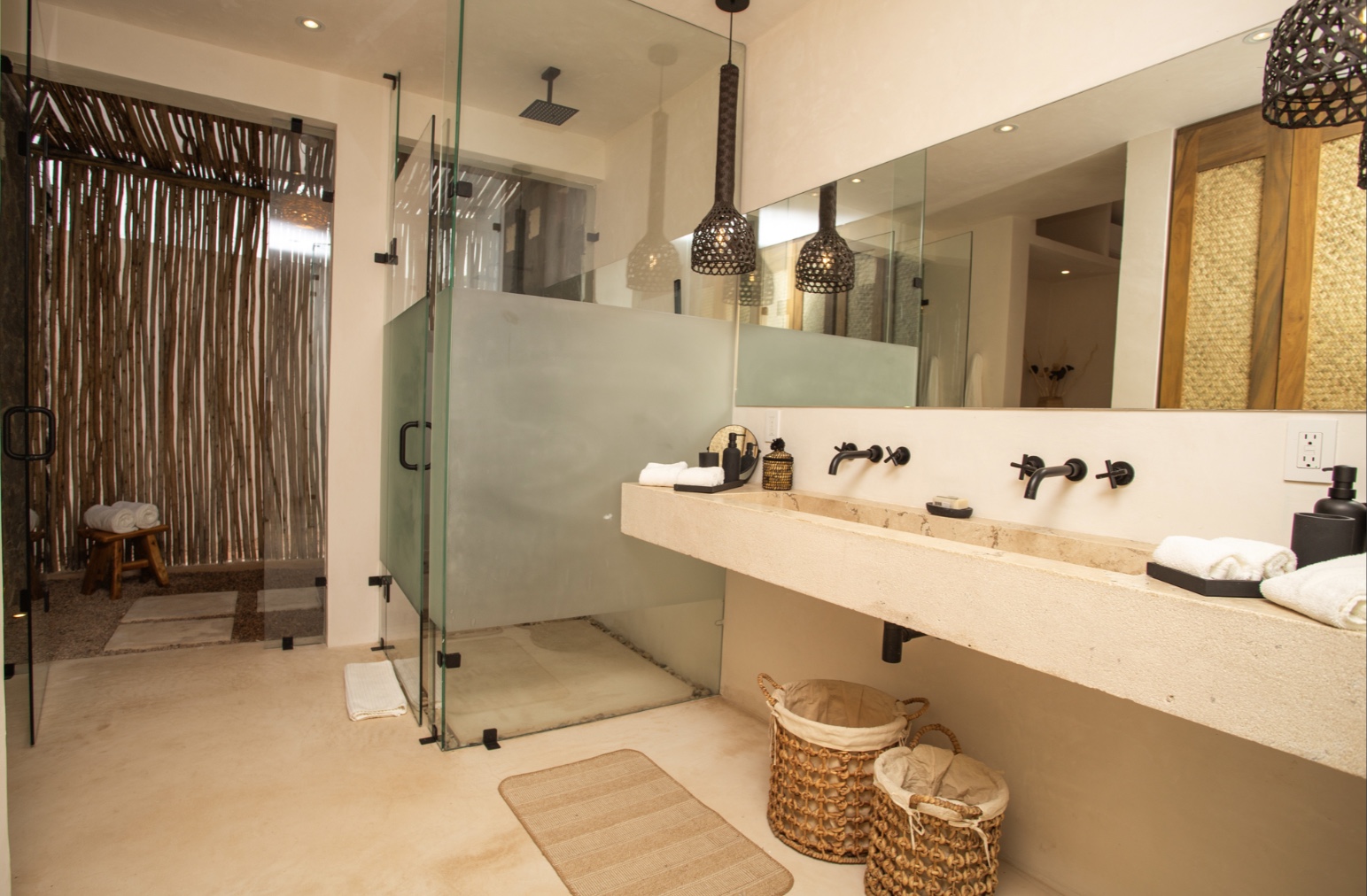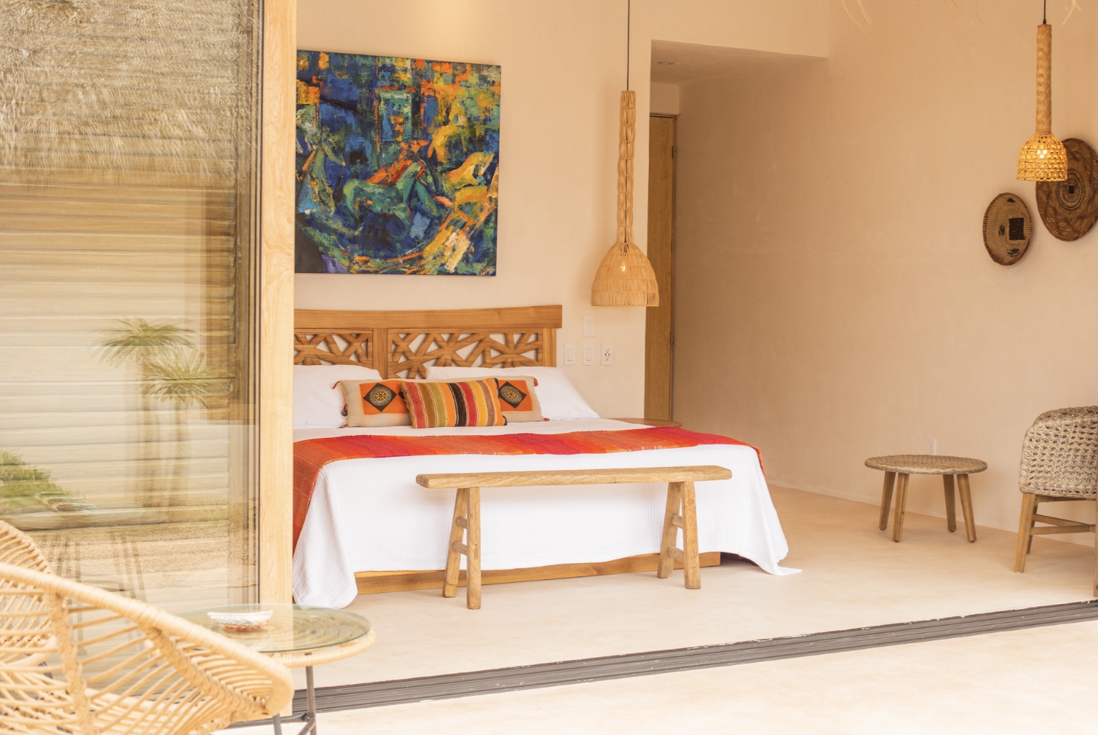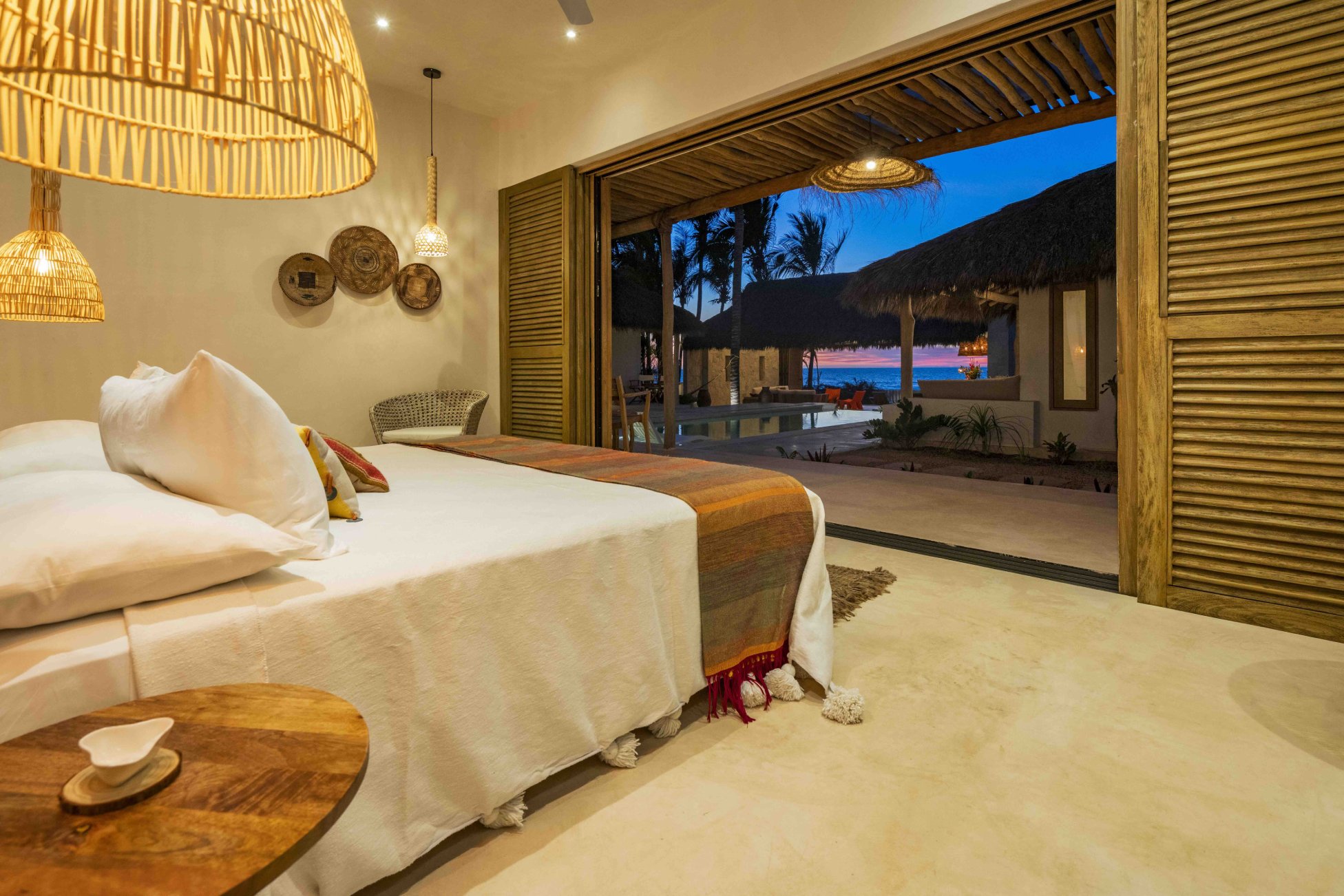Elegant and inviting, the Junior Suite features a plush king bed and is designed for ultimate relaxation for up to two guests. A coffee and tea station and mini fridge provide modern conveniences at your fingertips. The en-suite bathroom offers twin vanities, a refreshing rain head shower, and a private outdoor shower, blending comfort with natural beauty. Step out onto the private patio and enjoy serene moments surrounded by the gentle sounds of the coast.
