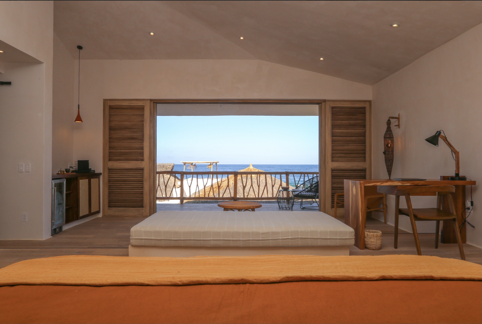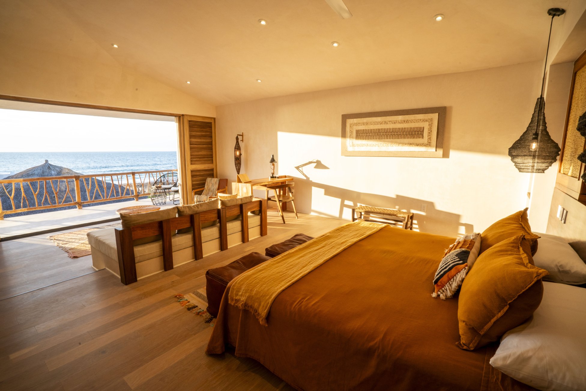 A sanctuary of comfort and refinement, the Principal Suite offers a king bed and a sofa bed, thoughtfully designed to sleep up to two guests. Begin your mornings with a coffee or tea from your private station, and enjoy the convenience of a mini fridge and desk area. A spacious walk-in closet adds a touch of ease to your stay. The en-suite bathroom features twin vanities, a luxurious rain head shower, and an indulgent outdoor shower for a truly immersive experience. Step onto your private balcony and take in breathtaking ocean views, making this suite an unforgettable retreat.